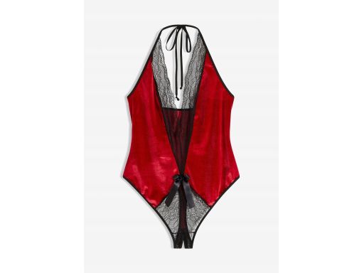 Venus body aksamitne ze stringami "ouvert" czerwono czarne z koronką r.40/42